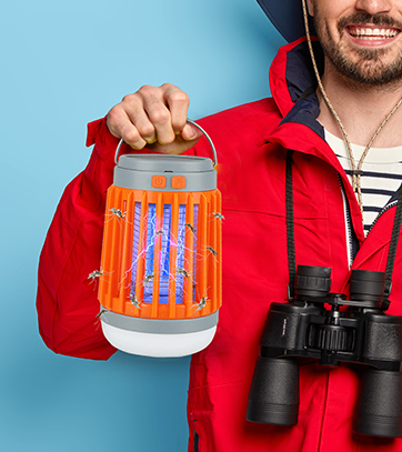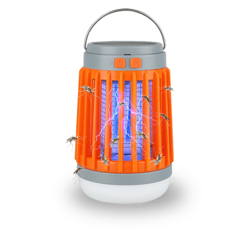 3-in-1 electric bug zapper, lantern and flash light. 5 lighting modes and 3 levels of brightness. Waterproof, noise-free with solar and USB charging.